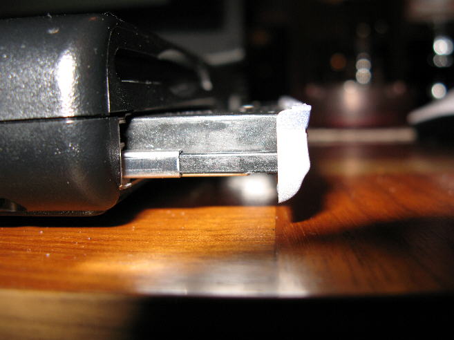 Schritt 6: Das neue Laufwerk nun wieder entnehmen und mittels Drehmel ( diese kleinen handlichen Hand-Schleifmaschinen ) 2mm von der Oberkante und 1 mm von der Unterkante ( so war es jedenfalls bei meinem Laufwerk notwendig ) möglichst sauber abschleifen. Soviel an Kunststoff-Material mechanisch wegschleifen, dass das Laufwerk nun fast passgenau mit dem Laptop-Gehäuse abschliesst und alles optisch anständig aussieht. So richtig perfekt wird es einem nicht immer gelingen, aber man kann es soweit hinbekommen, dass man zufrieden sein kann. Wer es ganz perfekt haben möchte, kann die Frontblende natürlich auch schwarz lackieren, damit die besser zum schwarzen Gehäuse des Notebbooks passt. Ich selbst habe aber drauf verzichtet, da es mich nicht sonderlich stört.
