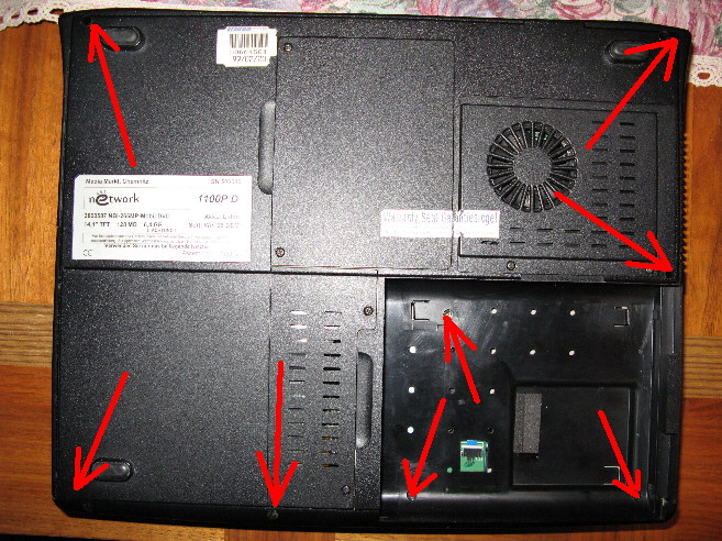 Wie muss man vorgehen, um ein defektes TFT-Display bei obigen Modellen ( die TFT Anleitung gilt auch für die AT-Modelle, da in diese identische TFT-Einheiten verbaut wurden ! ) zu wechseln und die Kiste aufzurüsten und dem Laptop final Beine zu machen ? An dieser Stelle erstmal ein paar allgemeine Hintergrund-Informationen, ehe wir uns dran machen die Kiste zu beschleunigen und das TFT-Display zu wechseln. Der Prozessor: In den 1100P werkeln fast immer Intel Prozessoren mit Taktraten von 266 Mhz in der Prozessorbauform MMC2. Diese Intel-Prozessoren sitzen auf einer Platine die neben dem Takt alles weitere übernimmt. Das hat den Vorteil, das man durch einen einfachen Tausch des Prozessors im grunde keine weiteren Einstellungen ( oder wie beim 1100AT Modellen und dem TX-Chipsatz Jumper einstellen muss ) vornehmen muss. Prozessor einfach gegen einen schnelleren austauschen und fertig ! Speicher: In der Regel sind die 440BX-Chipsätze diese Modelle rel. einfach zu erweitern. Man kann dort fast alles an Rams reinstecken, also auch SD-RAM mit 256 MB Speicher. Die Frage ist eigentlich nur, wie weit man das treiben möchte. Ich persönlich habe bei 384 MB RAM aufgehört weiter zu testen. Und 384 MB Ram reicht fuer Windows XP und SP2 problemlos, obwohl dafür auch schon 128 MB RAM sehr gut funktioniert. Bios: Bezüglich der BIOS-Versionen sind mir mehrere Versionen von 1.03 bis 1.17 bekannt. Letztere kommt selbst mit grossen Festplatten ( 20-30 GB ) problemlos klar und ist zudem Windows XP Kompatibel ( hierzu mehr ganz am Ende der Page ). Optisches Laufwerk: Hier wurden in der Regel nur langsame sehr einfache 20-24 Fache TEAC CD-ROM Laufwerke verbaut oder DVD-ROMs. Sollte man ein Modell mit CD-ROM besitzen, kann man durch einen einfachen Tausch mittels DVD-ROM nachrüsten. Wie das funktioniert kann man der Umbauanleitung auf der 1100AT Seite ( ist absolut identsich in der Vorgehensweise ) entnehmen. Was benötigt man also an Hardware für den TFT-Umbau und die Aufrüstung ? 1.) Sollte man einen 266 Mhz MMC2 Prozessor besitzen, ist dieser mittlerweile viel zu langsam aber glücklicherweise einfach durch einen schnelleren MMC2 Prozessor mit der Taktrate von 366 Mhz zu tauschen. Dieser 366 Mhz Prozessor bedient selbst Windows XP mit ServicePack 2 problemlos. D.h. man man mit dem Rechner prima arbeiten und auch per DSL surfen. 2.) Mehr Hauptspeicher, wobei 128 MB sicherlich das unterste Minimum darstellen um zum Beispiel Windows XP sauber nutzen zu können. Hierzu einfach ein 144 poliges 66 ( 100 Mhz geht auch ! ) Mhz SODIMM Ram-Modul einbauen. 128 MB stellen da sicherlich eine passende Kombination dar. Selbst ein 256 MB SODIMM ( z.B. Kingston SDRAM 100Mhz ( KVR100*64sc2/256 )) Modul läuft ohne Probleme. Da der BX-Chipsatz problemlos nach oben offen ist, lässt sich so ziemlich alles an Speicher realisieren. Wie gesagt: Bei 384 MB Ram habe ich aufgehört zun testen. 3.) Sollte auch die Festplatte aufgerüstet werden, ist der Tausch rel. einfach. Wie man eine Festplatte aus und wieder einbaut findet man in der TFT-Reparatur-Anleitung quasi nebenbei beschrieben. 4.) Falls ein optisches langsames Teac CD-ROM Laufwerk vorhanden ist, fliegt dieses raus und wird durch ein DVD-ROM ( wurden unter anderen in den alten NBI-Gericom Avantgarde Modellen verbaut ) ersetzt. Dieses schöne DVD-ROM Laufwerk liesst zudem sehr zuverlässig auch gebrannte DVD-R und DVD+R Medien. Hierzu in der 1100AT Page schauen, wie man vorgehen muss.... Hier in dieser Page bin ich aber noch einen Schritt weiter gegangen, denn ich habe den Notebook sogar ein "Samsung CD-RW/DVD SN324B" spendiert, welches erstklassig funktioniert ( übrigens, natürlich auch im 1100AT ! ), da ich gerne auch mal CDs brennen möchte... 5.) Man kann in die Kisten fast alles an TFTs einbauen. In den Modellreihen 1100AT; 1100P; NBI266 und NBI366 wurden 12; 13; 14 und sogar 15 Zoll TFTs verbaut. Man kann zwischen allen Modellen alle TFTs frei wechseln. Allerdings sollte man die 12 Zoll TFTs meiden, da diese nur eine native Auflösung von 800*600 Pixel besitzen. Alle anderen Panel wie die 13; 14 und 15 " TFTs haben eine native Auflösung von 1024*768 Pixeln, was eine durchaus praxisgerechte Auflösung für so ziemlich jede Anwendung darstellt. Und nun geht es an den Austausch eines defektes TFT-Displays: Hier wird nun beschieben, wie man das TFT komplett wechselt. Es wurde also ein "Network 1100P 266Mhz Modell" mit defekten TFT ( der Inverter war dort im Eimer ) genutzt und ein einwandfreies 14" TFT aus einem NBI-Avantgarde Modell in dieses 1100P Modell eingesetzt. Danach wurde der MMC2 266Mhz Prozessor im 1100P gegen einen 366 MHZ MMC2 Prozessor ausgetauscht und der Speicher von 64 MB Ram auf 128 MB Ram erweitert und das DVD-ROm gegen ein Combo Laufwerk ausgetauscht. Das Ergebnis war dann ein funktionsfähiger Network 1100P mit einwandfreien TFT und einer Performance die selbst Windows XP inkl. SP2 durchaus mehr als gerecht wird.