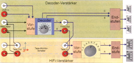 HiFi-Verstärkers liegt zwar auch im Signalweg der beiden Frontkanäle,