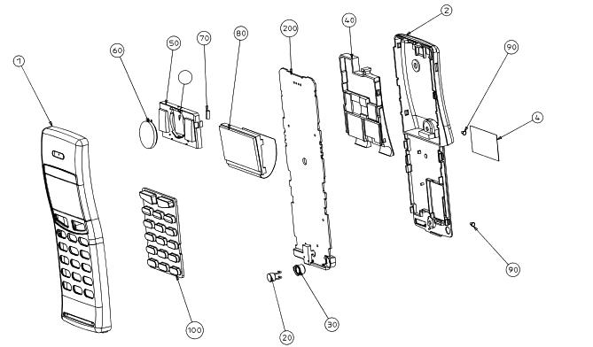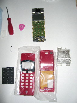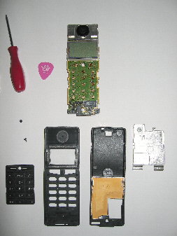 Backcover; Power-Antenne; Hauptplatine und die beiden Schrauben...