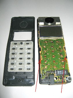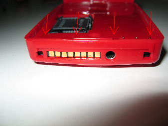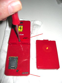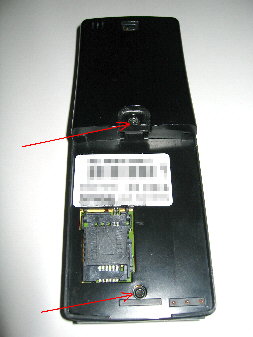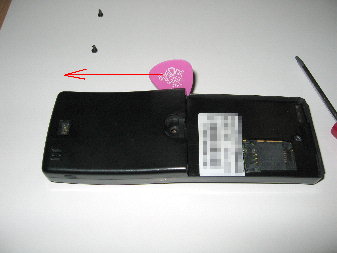 siehe Pfeile ! ) dargestellt ansetzen um die Power-Antenne aus dem Backcover