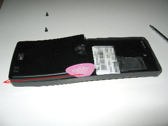 Backcover trennen. Hierzu das Backcover wie im Bild gezeigt anheben und