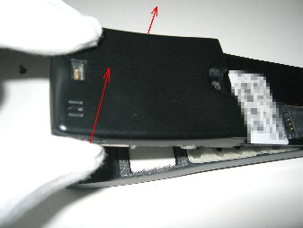 und Backcover zwängen und vorsichtig in Pfeilrichtung bis an die