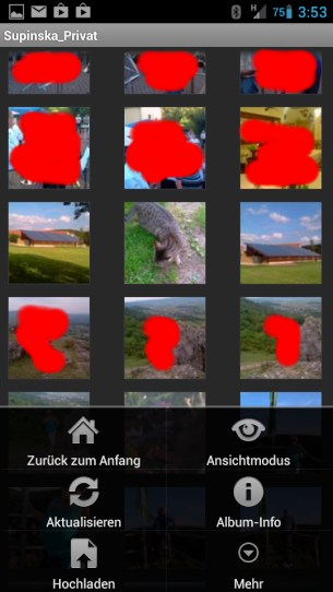 Nun kannst Du in Deinen Bilder-Ordner verzweigen und Dir die Fotos anschauen. Sollte die Miniaturbilder-Indexierung vom Server vorgenommen werden, kann es eine Weile dauern bis alle sichtbar sind. Falls Du diese mitübertragen hast (siehe Option oben) sind selbige sofort sichtbar. Um sich die Mini-Bilder im Ordner anzuschauen kannst Du mal an dem "- +" Regler rumspielen. Oder die Diashow ablaufen lassen...