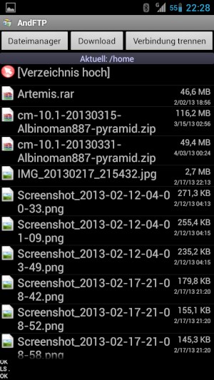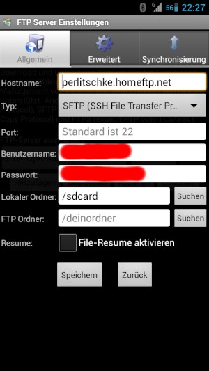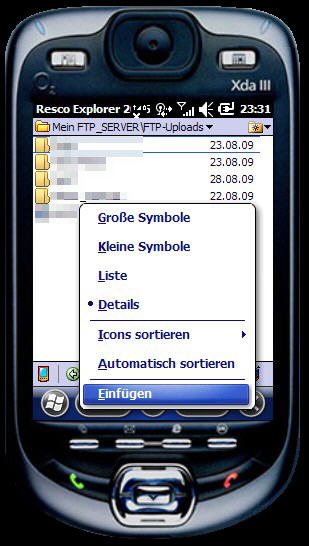 Nun noch auch noch die Erklärung, wie das mit einem Smartphone -dann auch mittels WLAN ans Hotel WIFI angekoppelt- funktioniert. Prinzipiell ist das zu obigen identisch, dennoch möchte ich mal kurz aufzeigen wie man zum Beispiel seine Handy-Bilder im Smartphone auf den FTP-Server kopiert. Der Einfachheit halber, nehme ich erneut obigen FTP Uploader Temp-Test Account: