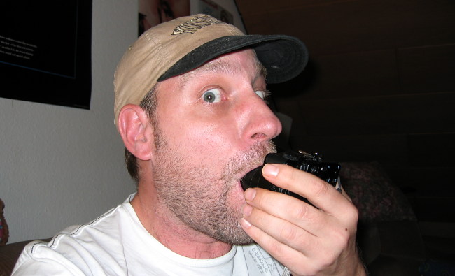 "WIR HABEN FERTIG und sollten froh sein, dass uns niemand beobachtet hat....". Wer bei Schritt 2 & 3 unsauber gearbeitet hat, wird sich wohl über noch mehr Schmutz ägern. Allerdings ist obiges -so bekloppt das klingt und sogar aussehen mag- ein probates Mittel selbst Sensor-Dreck zu elemenieren. Insbesondere aber prima geeignet, innen liegenden sichtbaren Objektivschmutz von Glas zu bekommen., denn exakt dieses Problem hatte ich nach einem extrem staubigen und windigen Tag ( anstrengend war´s auch ) rein und runter in den Grand Canyon im Mai 2009 diesen Jahres ( siehe Reisetagebuch 2009, denn da werde ich auch nochmal auf dieses hier dargestellte Blowjob-Thema eingehen ). Ich habe exakt 3 Versuche benötigt um einen extrem grossen Partikel innen vom Glas meiner G7 gelöst zu bekommen. Kleiner Trick: Vor und Nach dem Saugen mit dem Finger ein paarmal vorne auf das Objektiv "schnippen". Das lockert den/die Fussel und der Blowjob erledigt den Rest . Das ganze funktioniert, auch wenn das evt. einige nicht glauben mögen. Und was bei mir funktioniert, wird auch bei anderen genauso funktionieren sofern die da nicht in das Objektiv reiern oder sabbern ( Saugen, nicht Blasen !!! ). Ein Versuch bei obigen wirklich schlimmen Sensor-Dreck ist es allemal wert und bei innen liegenden Schmutz auf dem Glas vorne sowieso, denn viel schlimmer kann es ja garnicht mehr werden, insbesondere auch deswegen, weil wir dem Schmutz gleich ggf. richtig auf die Pelle rücken werden. In meinem Fall ging das in den USA bei meiner G7 im Mai diesen Jahres nicht ( kein Werkzeug & Erfahrung ), aber nachdem ich nun einen leichten und schnellen Weg entwickelt habe -den ich gleich beschreiben werde- werde ich vor dem Sensor liegenden Schmutz auch im Motel und in 10 Min. problemlos beseitigen können. Und so gehts--->