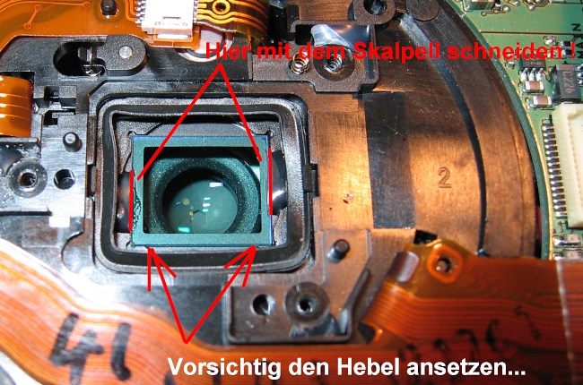 Bevor es aber ans Eingemachte geht, hier erstmal eine Anleitung wie man innen auf dem Objektiv-Glas liegenden von aussen sichtbaren Schmutz vertreibt.