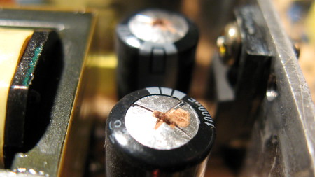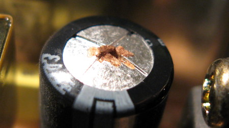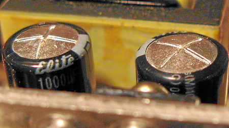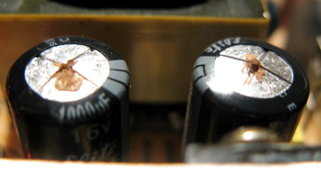 zerstörte Elkos ( 1 sah noch gut aus ) welche neben dem aufblähen