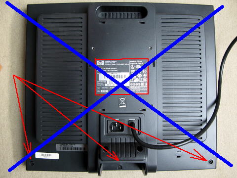 Kaltgerätestecker und Monitor-Kabels die markierte Schraube entfernen