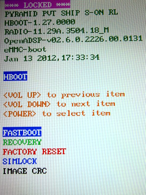 =================== Jetzt wählen wir im Menü den blauen Menüpunkt "BOOTLOADER" und drücken die Power-Taste. Jetzt wird nach einer "PG58IMG.zip" gescannt, welche aber zum Glück nicht mehr gefunden wird (hatten wir ja vorher schon wieder entfernt), soass wir wir nun im Haupt-Bootloader ohne Fastboot-Modus landen. Das sieht dann exakt so aus: