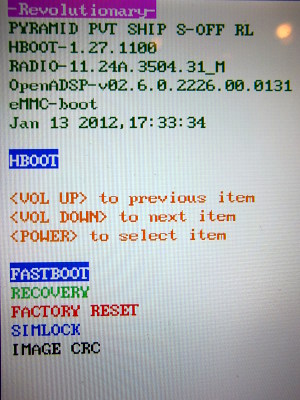 ...in dem Dir erklärt wird das Dein Sensation S-OFF geschaltet sein muss (das haben wir weiter oben längst erledigt!) und als Bildformat 480*800 Pixel Bilder zu verwenden sind. DAS IST FÜR DAS SENSATION FALSCH, denn das obige Programm kommt natürlich auch mit 540*960 Pixeln klar und dieses Bild-Format muss auch für das HTC-Sensation genutzt werden, falls Ihr Eure eigenen Bilder ---aehm Splash Screens natürlich- flashen möchtet. Ich habe Euch aber alle Arbeit abgenommen und schon alles komplett fertig vorbereitet. In dem Archiv auf Eurer Festplatte liegt auch Flash-Fertig konvertiert die scharfe Google-Dame mit dem bunten Haaren. Aber wie gesagt, Ihr könnt Euch auch andere Bilder schnappen; die mit dem Programm oben konvertieren und flashen. Ein paar fertige und schöne Bilder habe ich schon in unser HTC Sensation Forum hochgeladen. --->HIER KLICKEN<--- oder --->HIER KLICKEN<<< um direkt in den Bereich mit den Bildern zu springen. Da könnt und dürft Ihr Euch gerne bedienen so Euch etwas anderes besonders gut gefällt. Aber das solltet Ihr erst etwas später tun, denn jetzt lasst uns erstmal das schon vorbereitete ANDROID-Mädel als Splash-Screen in das HTC-Sensation flashen. Wir drücken nun eine beliebige Taste und landen in folgendem Menü: