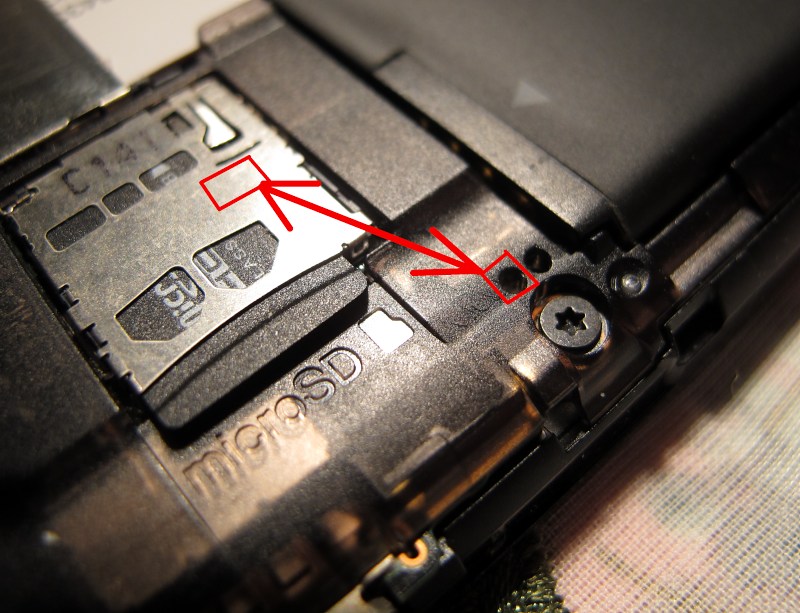 Schritt 3( Dein Sensation S-OFF schalten ): S-OFF wird benoetigst, damit wir vollen Zugriff auf das System haben und es stellt die Basis für alle weiteren Schritte 4 & 5 (weiter unten) dar. Schliesse also Dein Sensation mit dem Original USB-Kabel mit entferntem Unibody an Deinen PC an und wähle danach am HTC Sensation den Modus "Nur laden" (KEINESFALLS "Festplatte"). Nun öffnest Du mit dem File-Explorer unter Windows XP den Ordner "htc" welcher im Root der Partition C: zu finden ist (siehe oben) und öffnest den Ordner "temproot". An dieser Stelle tust Du erstmal nichts mehr, denn bevor es weitergeht kommen nun ein paar Hinweise welche gleich extrem wichtig sind. Das Umschalten von S-ON (verrammelt) hin zu S-OFF (offen) ist seit dem Update auf Android 4.0.3 (welches Du vorliegen haben wirst) mit etwas Hardware-Tricksereien verbunden, denn früher konnte man das mittels Software ganz bequem machen. Nachdem HTC und die Provider das HTC Sensation ab ICS 4.0.3 richtig übel verrammelt laufen haben, gibt es zwei Varianten um S-OFF zu erreichen. Einmal indem man sich mit Seriennummer offiziell direkt bei HTC als Entwickler (Developer) anmeldet und alles ganz offiziell laufen lässt also sozusagen mittels der Firma "HTC" das Sensation S-OFF schaltet (ganz böser Fehler, denn so weiss HTC das man für das Gerät keine Garantie mehr besitzt) oder der Weg mittels Büroklammer an einem Service-Kontakt des Sensations. Dieser Kniff wird auch umgangssprachlich "Wire Trick" (Deutsch: Kabel-Trick) genannt und mit der korrekten Software kann man mittels "Aktivieren des Service-Punktes" das Gerät auch ohne die Registrierung bei HTC das Sensation S-OFF schalten. Und das Beste ist, niemand weiss es, sodass man später jederzeit in der Lage ist alles wieder Rückgängig zu machen und den Original-Zustand des Sensation wieder herzustellen (hierzu werde ich hier keine Anleitung schreiben, denn das sprengt sonst den Rahmen dieser kleinen Page) zu können. Was ist nun der Wire-Trick genau? Man nutzt einen gut leitenden Gegenstand (z.B. Kabel/Büroklammer) und setzt diesen auf den Service-Point um das andere Ende auf Masse zu bringen (zum Beispiel auf das Schirmblech des SD-Slots). Das etwas fummelige an dieser Aktion ist, dass man sobald die Software-Aufforderung zum "Wire Trick" erscheint, diese Brücke (Kurzschluss) zweimal korrekt getimed durchführen muss. Also wie folgt: