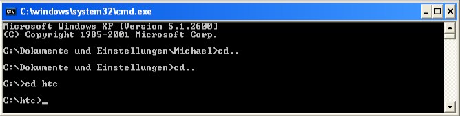 ===== ...ein und schon befinden wir uns dort wo wir auch hinwollen, also den Pfad "C:\htc\". Das sieht dann so aus: