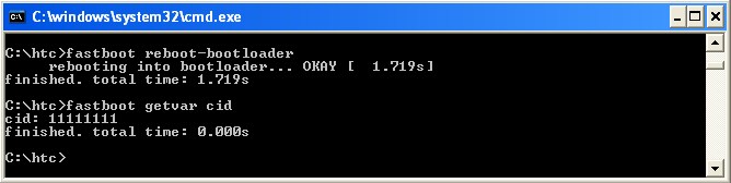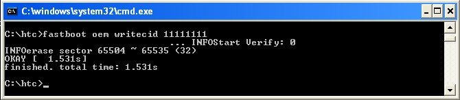 =============== Jetzt wird uns "fastboot.exe" unsere neue SuperCID ausspucken, also 11111111. Sollte er das so wie oben im Bild anzeigen, ist alles in bester Ordung und das Thema SuperCID darf als abgearbeitet betrachtet werden. Ferner wird eine Erschütterung der Macht in der gesamten Galaxis von allen Jedi-Ritter spürbar sein. Die Tage der Dunklen Seite und des Imperiums sind hiermit schon jetzt gezählt. An dieser Stelle starten wir nun unser HTC Sensation wie folgt neu: