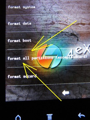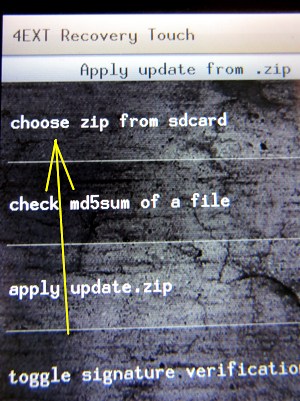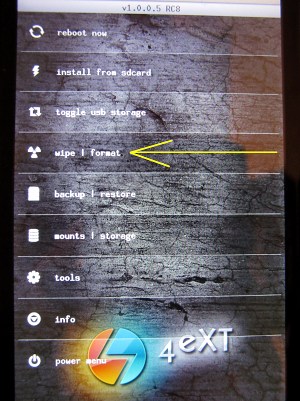 Ja, das kennen wir ja nun schon und jetzt besitzen wir in unserem HTC Sensation ein echtes 4EXT Recovery welches mittels Touchscreen bedient werden kann. Du kannst nun das Sensation vom USB und PC abkoppeln, denn das brauchen wir nun nicht mehr. Im Sensation-Bootloader in dem wir uns wieder befinden, navigieren wir nun das allererste mal richtig durch den Bootloader. Die Navigation ist extrem simpel und läuft wie folgt: