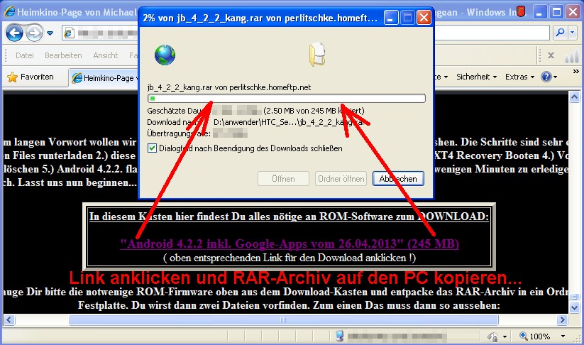 Nachdem man dieses "abgenickt" hat, wird das Android 4.2.2 oder 4.3 ROM in