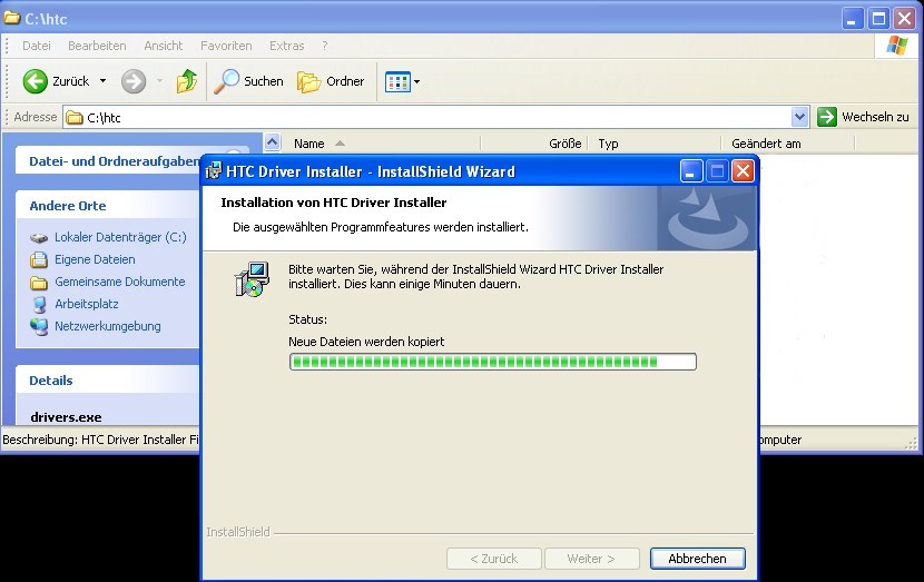 samt aller Unterordner, sodass Du in Laufwerk C dann einen Ordner "htc" findest