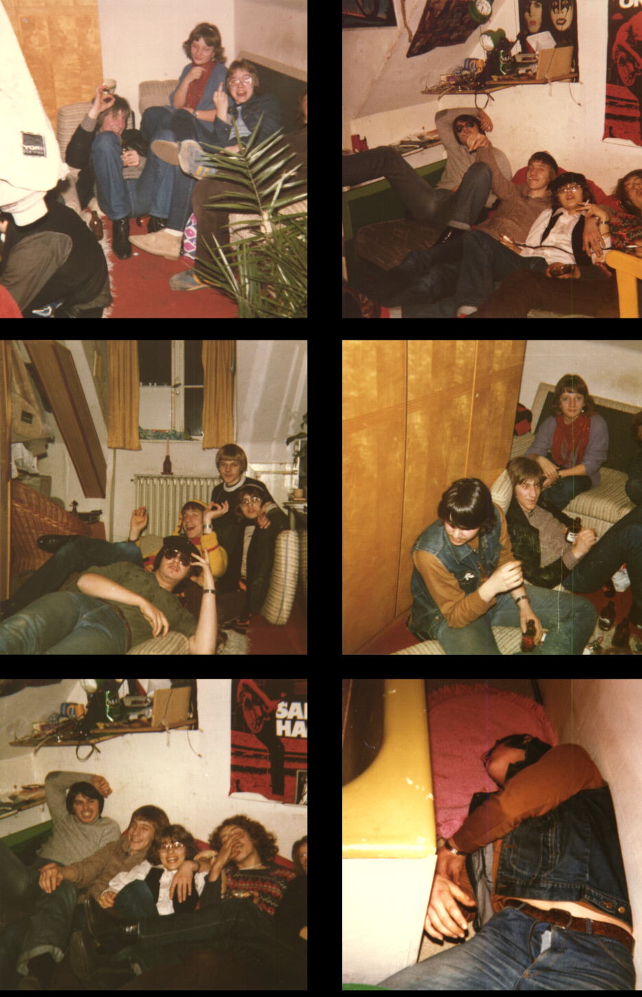 Historisches Ur-Material ( fast 25 Jahre alt ). Zu sehen Markus ( r.u. der Abknicker nachdem Mary Ann ihm an die Wäsche ging ); Thomas; Olaf ( Stichwort: Codfish Steel "Hard & Heavy ) Siggi; Monica und Stephanie ( Schwester von Codfish-Steel Birgit ). Mann oh´Mann....das waren verrückte wilde Zeiten ;-) |