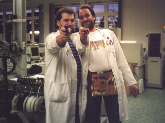 High-Tech SMD-Fertigung mit Michael, einem meiner kaputten Lieblings-Kollegen ( heute ist der Kerl Hausmeister )...