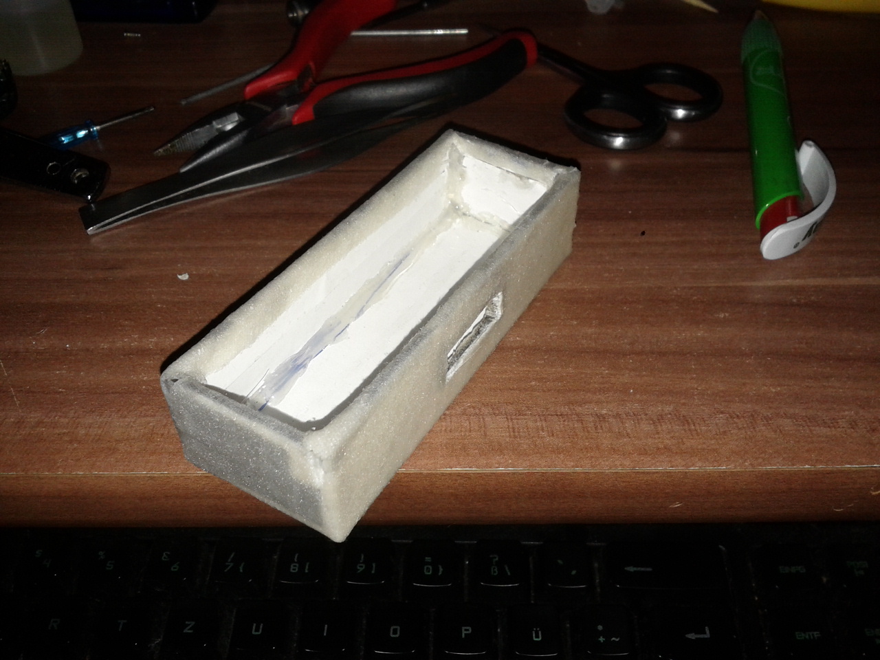??hm kl??rt da mal per pm sonst muss ich n ganz neuen tread aufmachen f??r die box -_- , BACK ON TOPIC box nun nach der arbeit angeschaut und ist STEINHART ,super ! so sollte es sein schneide gerade mit dem cuttermesser das fenster aus und das ??bersch??ssige thsirt rest raus, pberfl??che ist relativ rau und das w??re perfekt zum spachteln, mal sehen ob ich noch welchen habe ansonsten wird einfach nur mit 600er schleifpapier gegl??ttet und vorher noch l??cher f??r 510er und taster gebohrt, dann wird morgen noch mal mit grundierung angespr??ht und ??bermorgen oder falls die hitze es schafft zu trocknen schonmal mit farbe