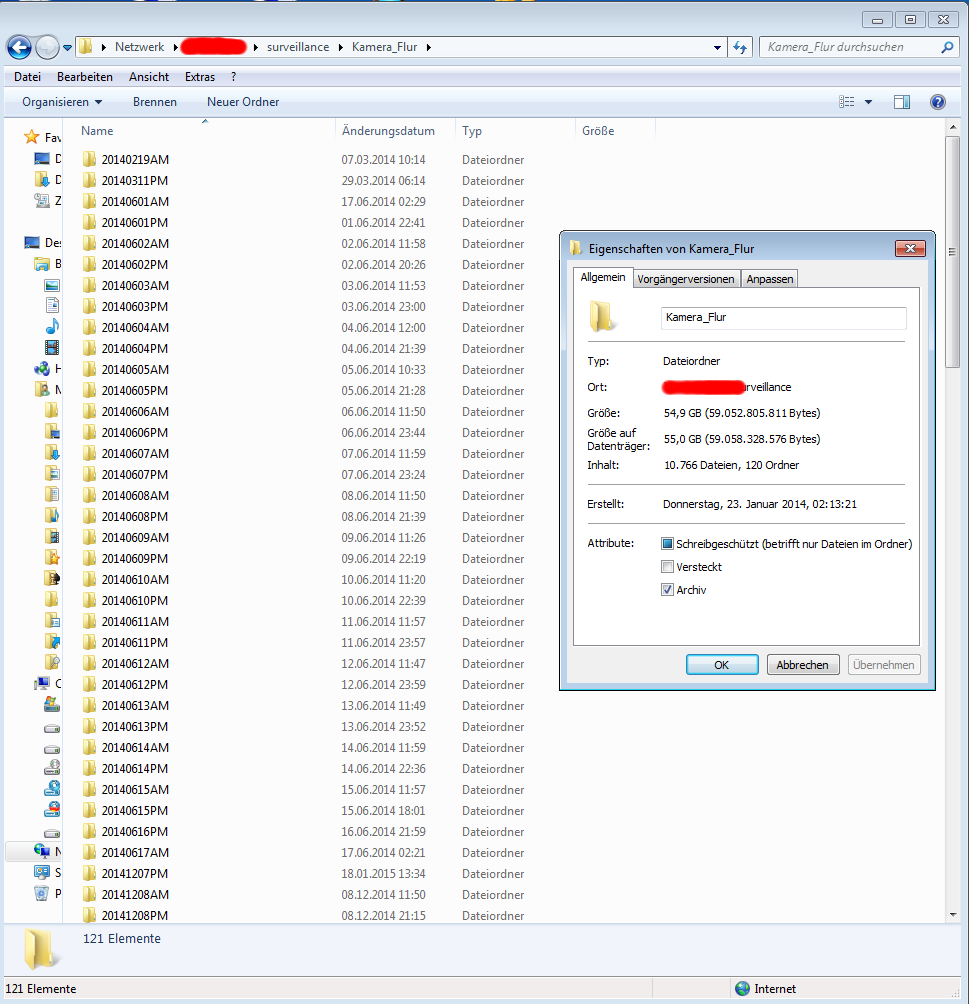 Hier mal ein Screenshot bezueglich des Datenvolumens (der seit langem hier immer um die 55 GB pendelt) einer meiner TENVIS-Systeme:
