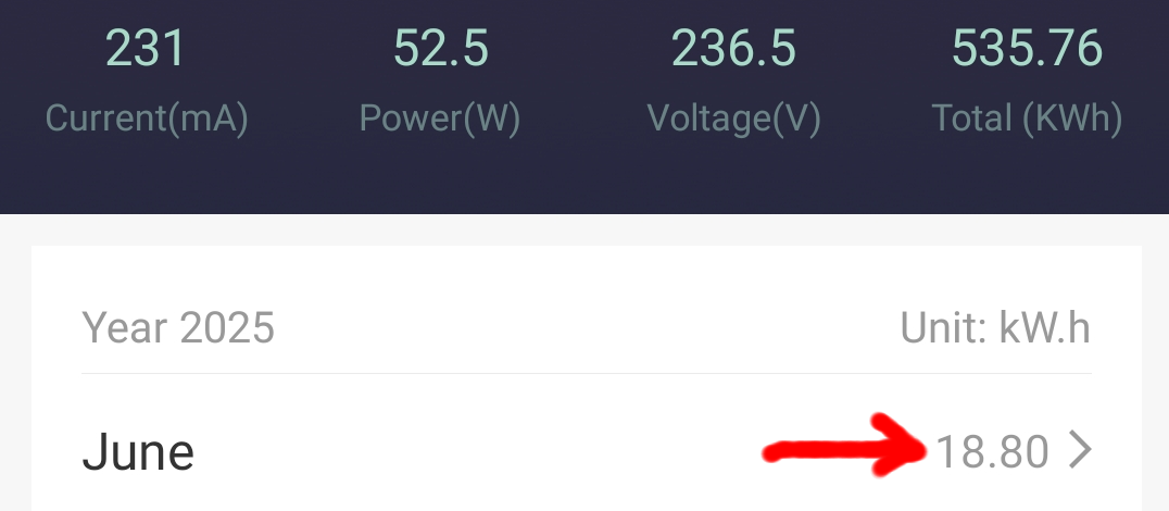 Alle 3 Anlagen laufen absolut perfekt und störungsfrei, wobei diese bei immer kürzeren Nächten immer weniger zu tun bekommen und nur einen Bruchteil Ihrer Kapazität los werden. Ende Juni habe ich aber noch etwas an den Einspeisezeiten gefeilt, denn mir mist aufgefallen das zum Sonnenuntergang und Sonnenaufgang immer noch etwas Bezug generiert wurde. Also springen die Systeme nun 50 Min. vor Sonnenuntergang an und laufen bis 120 nach Sonnenaufgang. Der Strombezug pro Tag findet immer nur zu den Übergangszeiten statt. Somit verhindere ich das etwas Strom bezugen wird bis die Carportpanel und PV-Anlage auf dem Dach genug Strom produzieren. Was haben die drei Nacheinspeisungen nun im Juni 2 mal dynamisch (Summe 5,4kwh) und Konstant (2,7kwh) in das Haus reingeschaufelt? 535,76kwh; 113,85kwh + 201,85kwh (=851,46kwh) sind in Summe seit der Inbetriebnahme (April 2024 und die 2 neuen 2025) von den Systemen ins Haus gepumpt worden. Damit werde ich von Jahr zu Jahr dokumentieren wann diese Systeme (Summe ca. 1600 Euro Investitionskosten) im Geld sind. Für den Monat Juni wurden von den 3 Systemen 69,98kwh Nachts in das Haus geschoben. Und die Nächste sind gerade im Juni sehr kurz. Hier die 3 Anlagen (Tuya Einspeise-Steckdosen) mit Summenangaben und Monatswerten im Monats-Detail:
