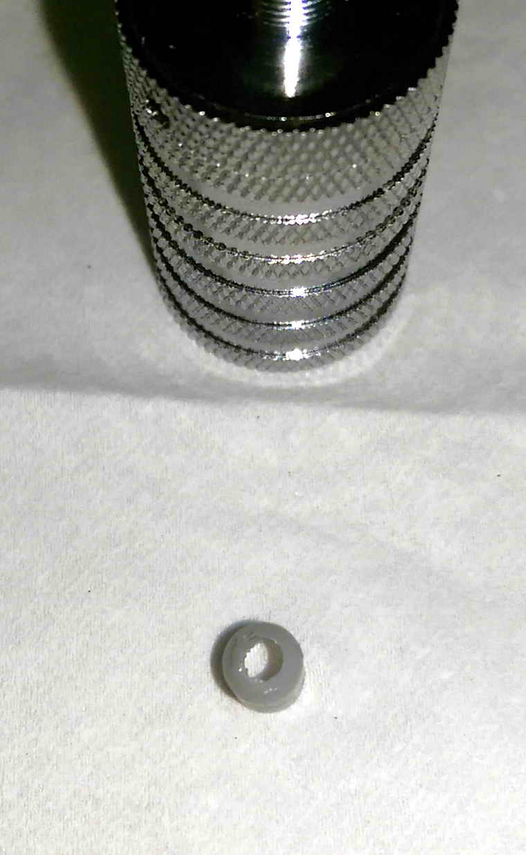 Ich habe den Schraubenkopf etwas mit der Feile bearbeitet und als Isolator habe ich das Plastikende von einer Aderendhülse verbaut.