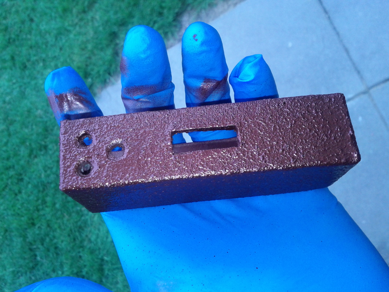 so nun wurde angezeichnet oben auf dem deckel zu den ecken striche gezogen um dann die mitte der box zu haben, rest erkl??rt sich selber l??cher gebohrt, danach dann bischen mit der feile bearbeitet und schleifpapier, danach eine schicht grundierung aufgespr??ht , danach mit farbspr??hlack eurer bzw meiner wahl :D trocknen lassen und ergebnis angucken^^
