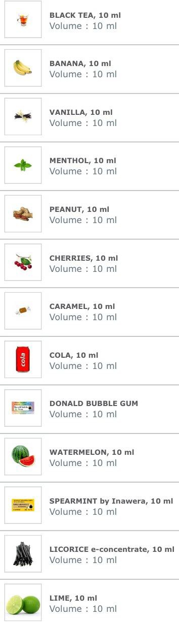 So, habe auch meine ersten liquids angesetzt , im Moment habe ich das smoking bull Royal hawk mit 7% im Verdampfer und muss sagen bin sehr angetahn davon . Habe noch das Juicy von denen angesetzt mal schauhen wie das ist . Von cbv habe ich Erdbeere, Bannane, Apfel und Tutti Frutti Energy. Gehen alle so in Richtung bunter Harribo Mix aber deffinitiv nicht schlecht! German Flavour Cherry habe ich mir hier bei meinem lokalen Dealer geholt und schmeckt sehr intensiv und lecker ! Habe heute von nem Kollegen noch Waldfrucht und Zitrone von Dampfertaxi gekriegt mal kucken wie das ist :)