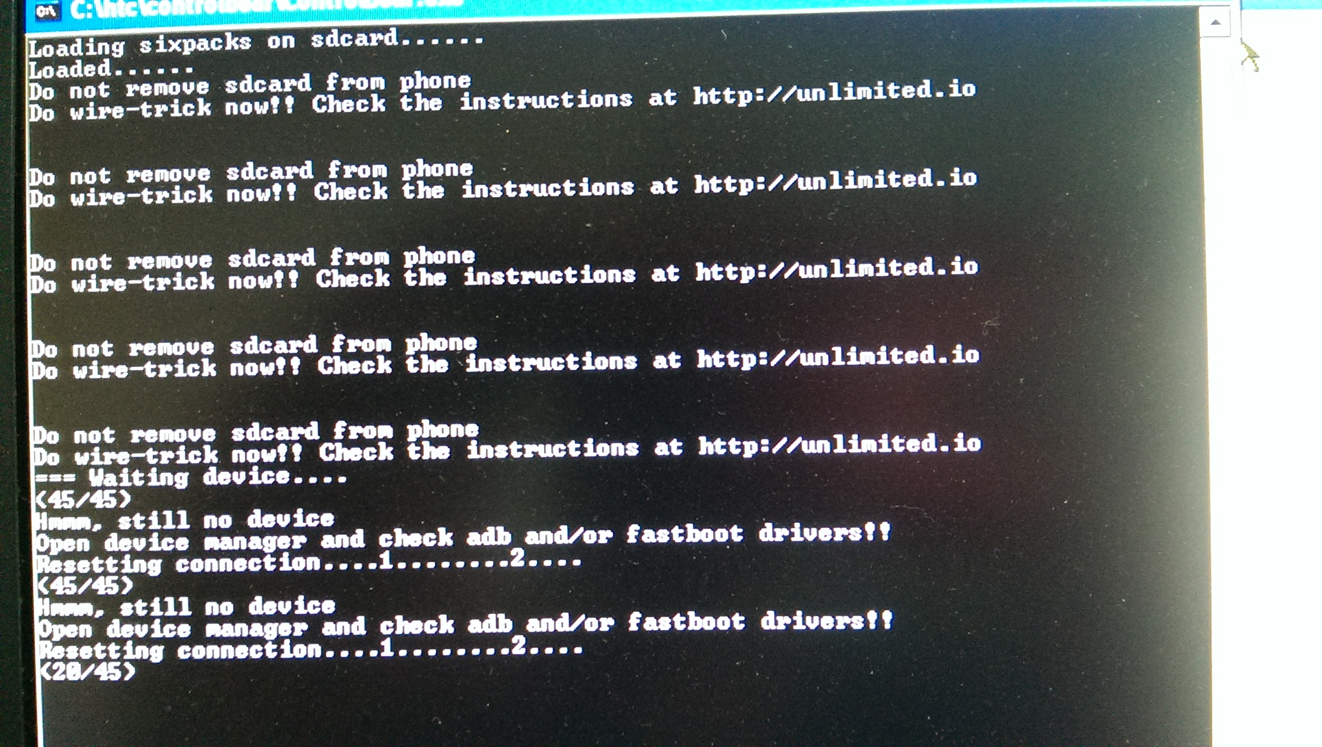 Also zum einen sollte da min. eine formatierte Fehlerfreie SD-Karte im Sensation stecken ( min. 1GB oder groesser ) und zum zweiten schaut es so aus als wenn der PC keine Verbindung zum Sensation aufbauen kann, da scheinbar die ADB-Treiber in Deinem System fehlen. Findest Du unter SYSTEM ganz oben...Horst hat geschrieben:Wenn ich dann den Wire Trick nochmals starte dann l??sst er mich diesen maximal 2 mal durchf??hren und versucht mehrfach eine Verbindung aufzubauen. (siehe Bild)