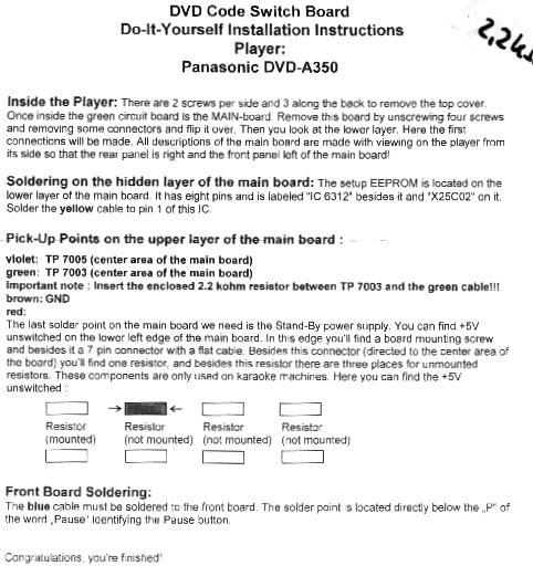 Habe schon mehrere Do-It-Yourself DVD Code Switch Boards in den Panasonic