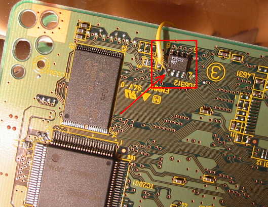 nun an PIN 1 dieses Regionalcode-Chips (EEPROMs) angelötet. Siehe Pfeil