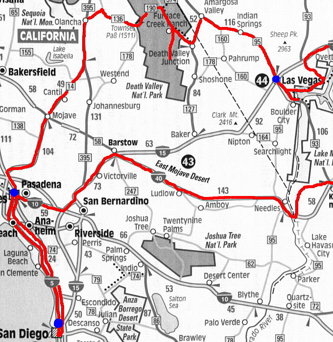 lustig gemacht. Ein Irrsinn: San Diego; Los Angels; Death Valley und