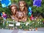 wurde an den Bronce-Statuen von Fans Blumen und Teddybären niedergelegt
