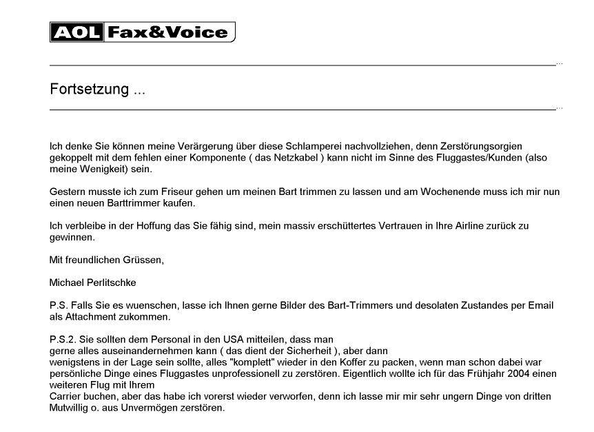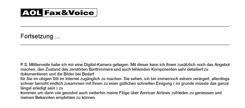 komplette Vorgang mit American Airlines bezüglich des Barttrimmers im