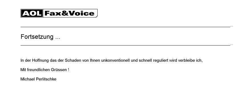gesendeten Fax-Mittteilungen und die abschliessende schriftliche Kommunikation