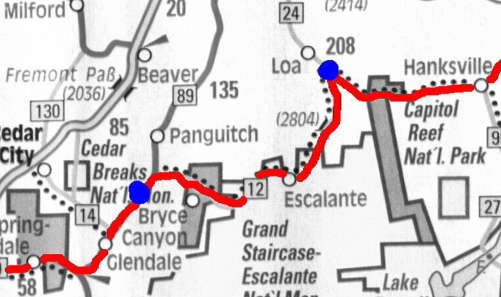 zum Bryce-Canon und den Highway Nummer 12: