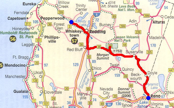 die Spielerstadt Reno und fuhren Nordkus bis Susanville um dann auf
