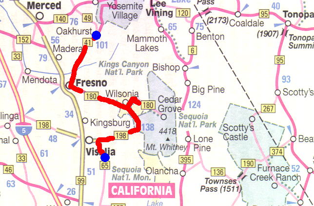 anzufahren ) belohnt, um auf dem Highway 198 bis kurz vor "Visalia" links