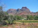 Gegenüber ragt der hellgraue, kantige Monolith des Great White Throne