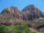 Im Zion National Park erheben sich rostrote bis bräunlich gelbe