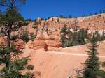 Für Wanderer ist der Rim Trail zu empfehlen, der an der 9km langen Abbruchkante des Bryce Canyon entlangführt. Stets mit Blick auf das prachtvolle Felsengewirr. Das attraktivste Teilstück verläuft in nordsüdlicher Richtung vom Sunrise und Sunset Point zum 4,5km entfernten Bryce Point. Je nach Licht und Tageszeit leuchten die Steinskulpturen in immer neuen Rot- und Orangeschattierungen.