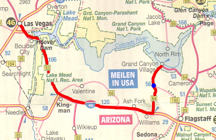 den Hoover-Dam den Highway 93 südlich bis zu Kingman