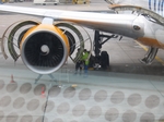 technischen Störung am rechten Triebwerk um 45 Minuten verzögerte.