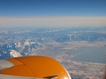 dem Kabinenfenster noch ein Blick auf das verschneite "Salt Lake City" (