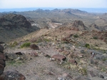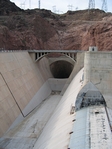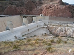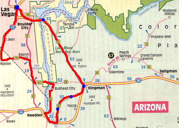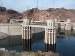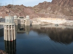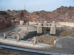 Der Tank war voll; das Wetter noch in Ordng; es waren genug Zigaretten vorhanden...und es fehlten uns nur noch die schwarzen Sonnenbrillen ( Blues Brothers...grins ). Also ab die Post zum Hoover-Dam um dann auf dem Highway 93 Richtung Süden Kingman anzusteuern. Nachdem wir den Hoover-Dam überquert hatten, machten wir noch einen kurzen Stop an einem der Aussichtspunkte. Uns fiel schon im Mai 2005 auf, dass der aufgestaute Lake Mead langsam aber sicher immer kleiner wurde und nicht sonderlich viel neues Wasser nachkommt. Und diesmal wurde diese langsame Austrockung resp. Wasserverlust noch deutlich sichtbarer und es war fast schon ein bisschen erschreckend wenn man den Stau-Zustand von vor 12 Jahren kennt. Ich habe mir mal die Mühe gemacht und eine alte analoge Aufnahme welche ich 1994 ( also vor 12 Jahren auf der Nevada-Seite geschossen hatte ) zum direkten Vergleich rausgesucht. Auch die Überläufe sind trocken und es steht auch nicht zu befürchten, dass diese mittelfristig wieder zum Einsatz kommen werden. Ich weiss nicht ob das Anzeichen ( im gesamten Westen trocknen die grossen Seen seit langer Zeit langsam aber sicher aus ) für die drohenden Klimawandel sind, aber es steht zu befürchten.