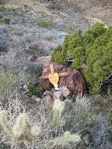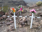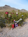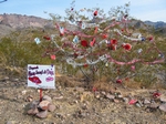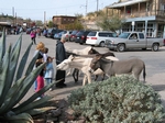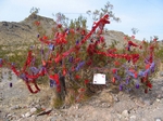 In Arizona verläuft die <schönste Passage> der Route 66 von Kingman über den Gold Hill und den Sitgreavers Pass bis zur 90km entfernten kalifornischen Grenze am Colorado River. Auf der Strecke liegt das alte Goldgräbernest <OATMAN>. Heute ist es ein pittoresker Touuristenort mit verwitterten Westernfassaden und wilden Eseln, die gelegentlich über die Route 66 trotten. In Oatman haben wir natürlich noch eine sehr ausgedehnte Pause gemacht und einer inzinierten Strassenschiesserei beigewohnt und die vielen witzigen Geschäfte besucht. Achja....Mr. "Yellow Hammer" ( dem sein Deutsch ist seit 2003 deutlich besser geworden ! ) hat dort auch noch seine Indianer-Bude. Besonders schön und beeindruckend ist ein Kunst-Laden mit dem Namen "Creative Edge" mit deren Gallerie. Die verkaufen Handgemachte wunderschöne ( aber auch teure ) und beeindruckende wunderbare Sandstein-Skulpuren und Luftbefeuchter. Zu finden am Ortseingang zur linken und ein echter Geheimtipp neben all den Route 66 - Plunder den man in Oatman sonst vorfindet... Achja, am Strassenrand kurz vor Oatman haben wir dann noch versteckt in einem Hügel ein ziemlich "abgefahrenen" wilden Friedhof besucht, wo offenbar nur Säufer und Landdstreicher begraben liegen. Hier ein paar Bilder: Das in Oatman alle ein wenig kreativ verrückt sind liegt auf der Hand, denn das haben wir auch beim Verlassen des kleinen Ortes wie folgt feststellen dürfen. Da dort natürlich keine Weihnachtsbäume wachsen, wurde einfach das vorhandene Busch-Material sozusagen themenorientiert zu einem Weihnachtsbaum umdekoriert. Man fuhr also an Unmengen zum Teil witzig geschmückten Buschen vorbei. Hier ein paar Wahllos rausgepickte Impressionen ( schade das das Wetter so durchwachsen war ): Weiter ging die fahrt ein kurzes Stück auf der Interstate 40 um dann rechts auf den Highway 95 Richtung Norden zu fahren. Ein schönes Teilstück bis kurz hinter Bullhead City. Witzig war, dass wir uns in Arizona bewegten und auf der anderen Seite des Flusses Nevada lag. Dort konnte man wieder Casinos und jede Menge schöner Bauten entdecken, wobei es auf der Arizona-Seite eher langweilig aussah. Kurz hinter Bullhead-City ging es links auf den Highway 163 Richtung Westen weiter um dann auf dem Highway 95 Richtung Norden wieder Las Vegas näher zu kommen. In Searchlight nahmen wir aus Zeitgründen den Highway 164 um mölichst schnell auf die Interstate I-15 wieder "nach Hause" zu fahren. Gegen ca. 18 Uhr waren wir wieder in unserem Hotel und sehr zufrieden mit diesem unterhaltsamen schönen Tagesausflug. Nachdem wir uns noch etwas Essen eingeworfen hatten, hiess es sich langsam für den letzten Las Vegas Abend und die noch ausstehende Show fertig zu machen. Gegen 20 Uhr waren wir wieder im Casino und mussten noch ca. 2 Stunden ( 22:30 ging es mit "Bite" los ) totschlagen. Was lag da also näher, als Spielen zu gehen. Und was dann passierte war unglaublich... Wir spielten mal wieder Double-Double-Bonus Poker und nach schon 3 Minuten liefen mir die ersten 4er rein. Und das wiederholte sich so dermassen oft, dass es mir fast schon ein bisschen peinlich wurde. Ich hatte so dermassen viel Glück, dass der Credit-Zähler an dem genutzten Automaten schnell auf sensationelle 3800 Coins hochschnellte und kein Ende abzusehen war. Diese 3800 Coins habe ich mir inform eines Cash-Vouchers auszahlen lassen und den Automaten verlassen, was sich als sehr kluge Entscheidung herausstellen sollte. Da ich also nun Cash-Technisch weit vorne war, beschloss ich einen anderen Automaten zu nehmen und nochmal eine Kleinigkeit zu verspielen und auch hier Rappelte es in der Kiste wie verrückt. Ich hätte da mit Anlauf blind gegenlaufen können und mir wäre ein fetter 4er reingelaufen. Auch hier beendete ich diesen Cash-Terror rel. flott und liess mir einen fetten Cash-Voucher auszahlen. Thomas wollte das alles garnicht glauben und schüttelte mal wieder ungläubig mit dem Kopf und meinte "Micha, Du hast wirklich erstaunlich viel Glück". Da es mittlerweile exakt 21:30 Uhr war und wir langsam dran denken sollten Richung Show zu latschen, schlug ich Thomas vor, "in 10 Minuten machen wir uns auf den Weg". Parallel steckte ich nochmal an einen weiteren Automaten Geld ein und spielte etwas, denn das was bis jetzt schon an Gewinnen bei mir aufgelaufen war, war beeindruckend....und dann passierte obwohl ich schon sehr fett gewonnen hatte, das UNGLAUBLICHE. Mir lief um exakt 21:33 Uhr ein HERZ DAME; HERZ BUBE & HERZ ASS im ersten lauf rein. Diese drei Karten hielt ich und drückte "DRAW". Es wurden "HERZ ZEHN" und "HERZ KÖNIG" ausgespielt. BIIIINNNNNGGGGOOOO.....I hit the Royal Flush...!!!!