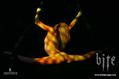 Unglaublich...nachdem ich schon so dermassen viel gewonnen hatte, lief mir quasi nebenbei in letzter Sekunden ein Irrsinniger "Royal Flush" rein und erhöhte mein Creditkonto in ca. 3-4 Minuten lauten Gebimmels und hochzählens auf diesmal "4275" Coins. Ich bat Thomas ein Bild von mir und der Maschine zu schiessen, aber Thomas war mittlerweile so sauer auf meine Glückssträhne, dass der mir diesen Gefallen nicht tat. Also musste ich halt selbst ein "Beweis-Foto" schiessen, denn das glaubt mir sonst kein Mensch. Und das war in diesem Jahr schon mein zweiter Royal Flush ( siehe Urlaubsreisetagebuch Mai/2005 ). Und wieder liess ich mir einen fetten Cash-Voucher von der Maschine auszahlen. Danach verliessen wir den Ort des "Grauens" um Richtung Stratosphere Show-Room zu gehen. Unterwegs nutze ich einen der Redeem-Automaten um mir die vielen Cash-Voucher in Bargeld auszahlen zu lassen. Und das war verdammt viel an Kohle und auch 100 US$ Noten. Soviel, dass ich das Kleingeld ( Unmengen an albernen 20 US$ Noten ) schon in meine Hemdtasche knüllen musste. Fest stand, nach dem heutigen Abend resp. letzten 100 Minuten, war dieser Urlaub resp. Dez. 2005 Trip kostenlos für mich. Einen schöneren und passenderen Urlaubsabschluss kann man sich garnicht wünschen ! Nun stand aber "BITE" als Bonus auf dem Programm.