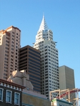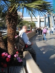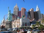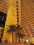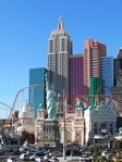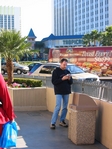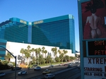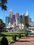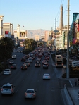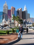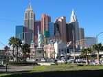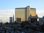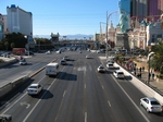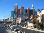 Dort trieben wir uns den ganzen Tag in folgenden Casinos herum ( sackten auch wieder ein paar Players-Cards und kleine Geschenke ein ) und schauten uns alles sehr genau an: "MGM-Grand" ( 36 ); "TROPICANA" ( 39 ); MADALAY BAY"( 43 ); "LUXOR"( 42 ); "EXCALIBUR"( 41) & "NEW YORK-NEW YORK"( 38 ). Da das Madalay Bay; Luxor und Excalibur" mit einer kostenlosen Hochbahn ( ähnlich der Monorail ) verbunden war, trafen wir dort durch einen Zufall auch unsere Condor-Flugbegleiter vom Donnerstag. Ja, die Welt ist ein Dorf... Alles in allem war es wieder mal ein wunderschöner Tag und wir nahmen auch an fast allen kostenlosen Promotion-Spielen teil und sacken erneut ziemlich blödsinniges Zeugs ein. Im Luxur meldete sich wieder der Magen wo wir uns dann etwas preiswertes Fast-Food gönnten. Toll ist aber, wenn man in Vegas viel Zeit hat ( was sonst regulär nicht der Fall ist wenn man nur ein Wochenende dort ist ). Man sieht viele tolle und schöne Dinge, welche man sonst nicht -oder nur durch Zufall- entdecken würde. Zudem waren fast alle Casinos auf "Weichnachten getrimmt" und was die sich diesbezüglich einfallen lassen, ist unglaublich. Insbesondere da man draussen eher an den Hochsommer erinnert wird, denn in der Sonne war es angenehm warm. Hier mal ein paar Bilder des südlichen Teils vom Strip ( viel geknipst hatten wir leider nicht... ) und insbesondere der Kreuzung "Tropicana Ave.":