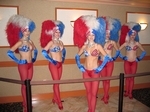 Nachdem diese wunderbare schöne Show viel zu schnell gelaufen war, hatte mal noch Zeit mit den Kopien von Elvis & Co auf Tuchfühlung zu gegen und ein paar Erinnerungs-Fotos zu schiessen. Und wir nutzen diese Gelegenheit natürlich. Hier ein paar Schnappschüsse: Mittlerweile war es fast 23 Uhr geworden und was lag näher, als noch gepflegt ein paar Dinks im Casino kostenlos zu schlabbern. Wir also wieder zu unseren Dbl.Dbl.Bonus Video-Poker Maschinen getigert und noch von der tollen Show begeistert den Royal Flush gejagt. Und wieder einmal -mittlerweile hatten wir aber auch schon Routine- jagte ein 4er den nächsten, sodass wir erneut nicht wirklich Geld verspielten, dafür aber umso mehr Alkohol kostenlos ( vom Trinkgeld für die Cocktail-Mädels abgesehen ) konsumierten. Wir spielten ca. 2 1/2 Stunden, ehe es Zeit wurde ins Bett zu gehen, denn morgen stand die Übernahme unseres Mietwagens auf dem Programm und da wollten wir halbwegs Fit sein. Sehr gut gelaunt und wieder leicht angetüddelt, beschlossen wir diesen schönen und unterhaltsamen Tag zu beenden.